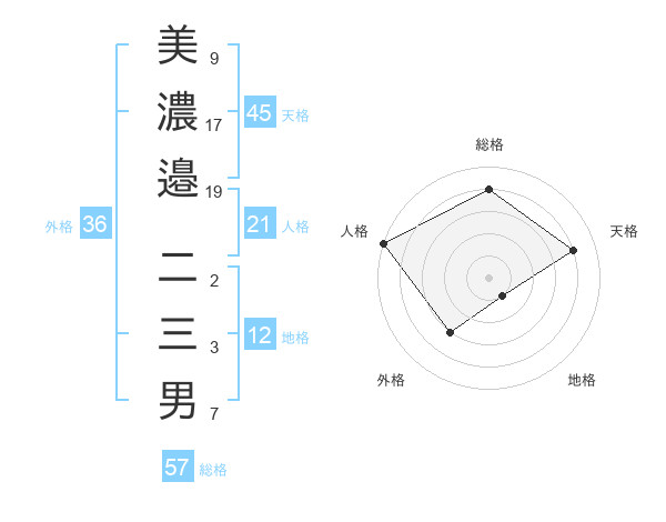 美濃邉 二三男さんを姓名の画数から五運を鑑定