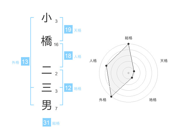 小橋 二三男さんを姓名の画数から五運を鑑定