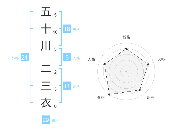 五十川 二三衣さんを姓名の画数から五運を鑑定