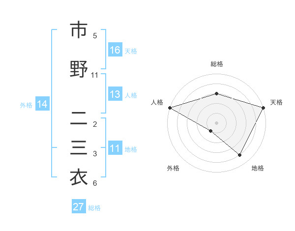 市野 二三衣さんを姓名の画数から五運を鑑定