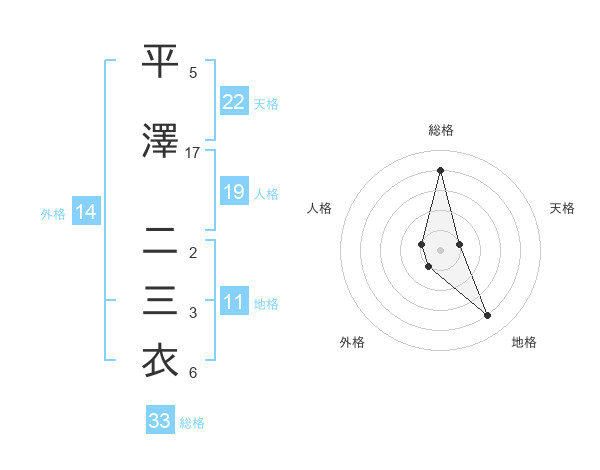 平澤 二三衣さんを姓名の画数から五運を鑑定