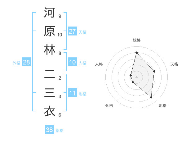 河原林 二三衣さんを姓名の画数から五運を鑑定