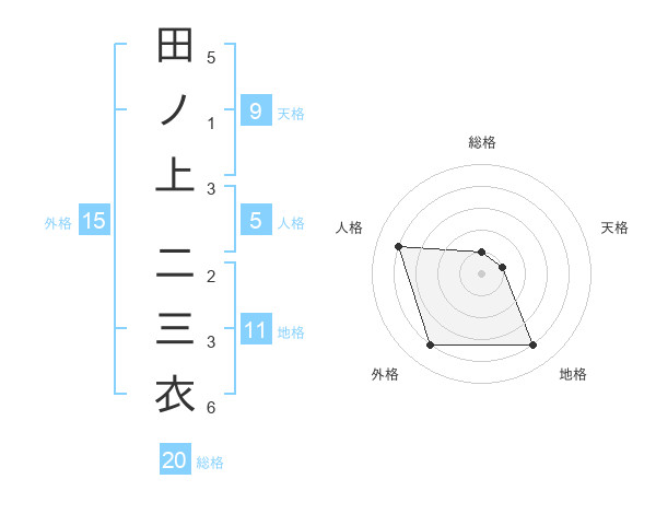 田ノ上 二三衣さんを姓名の画数から五運を鑑定