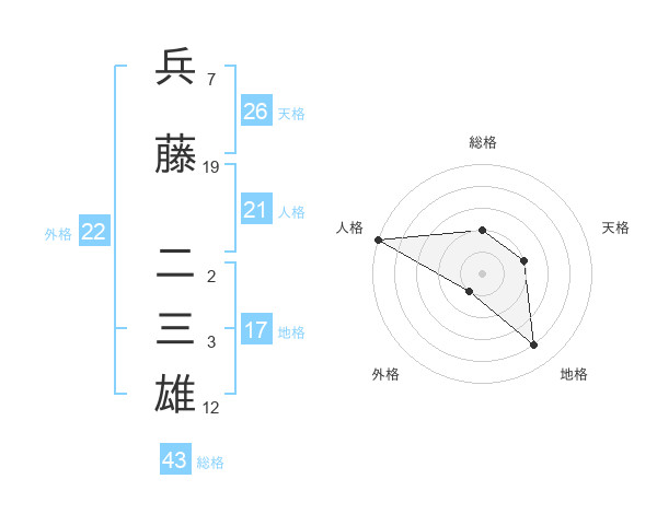 兵藤 二三雄さんを姓名の画数から五運を鑑定