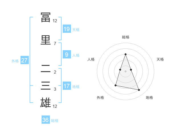 冨里 二三雄さんを姓名の画数から五運を鑑定