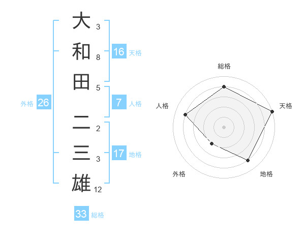 大和田 二三雄さんを姓名の画数から五運を鑑定