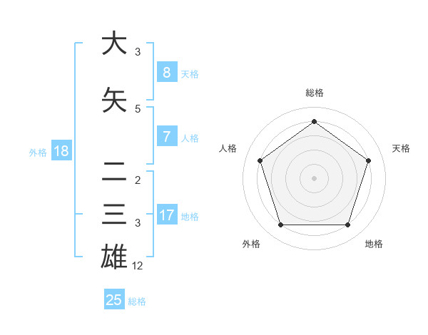大矢 二三雄さんを姓名の画数から五運を鑑定