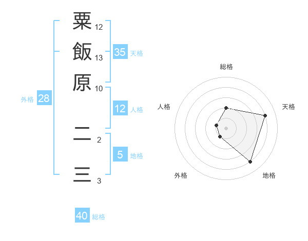粟飯原 二三さんの天格は35画の4点!