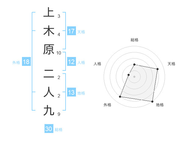 上木原 二人九さんを姓名の画数から五運を鑑定