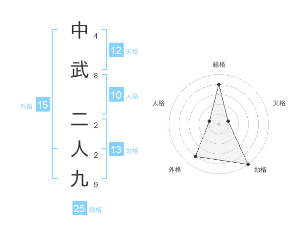 性格や才能などを表す2番目に重要な運勢です。人間関係や協調性、社会的な成功に影響します。主に20歳から50歳ぐらいまでの中年期の運勢を表します。