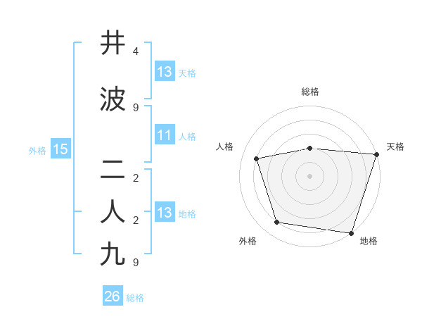 井波 二人九さんの総格は26画の2点!