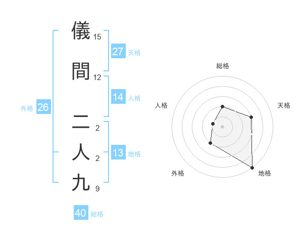 儀間 二人九さんの総格は40画の2点!