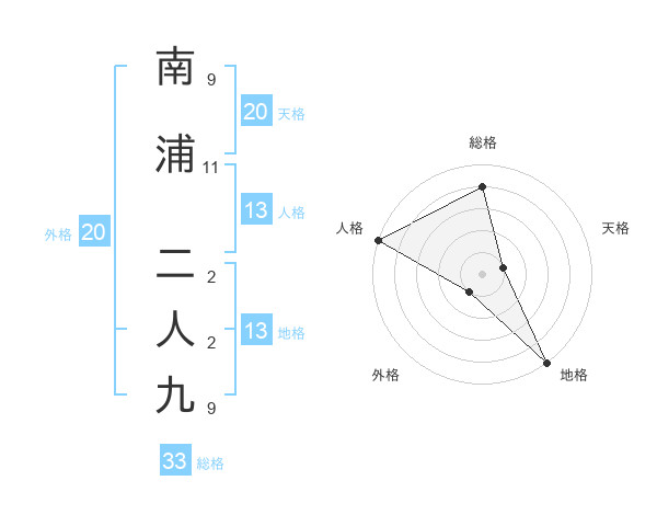南浦 二人九さんの総格は33画の4点!