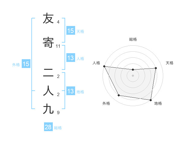 友寄 二人九さんを姓名の画数から五運を鑑定