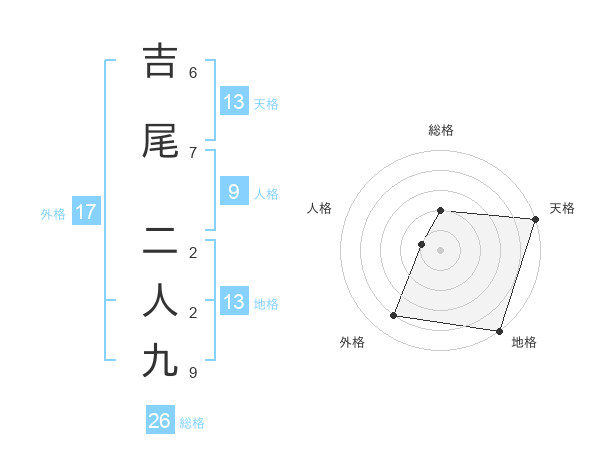吉尾 二人九さんの総格は26画の2点!