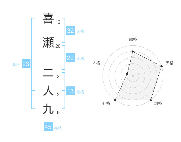 喜瀬 二人九さんの総格は45画の4点!