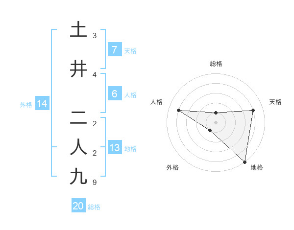 土井 二人九さんの総格は20画の1点!