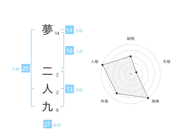 夢 二人九さんの総格は27画の3点!