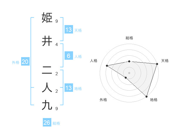 姫井 二人九さんを姓名の画数から五運を鑑定