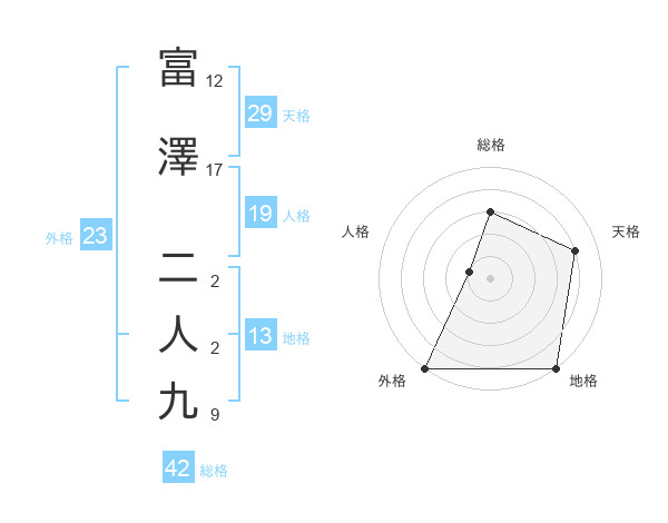 富澤 二人九さんを姓名の画数から五運を鑑定