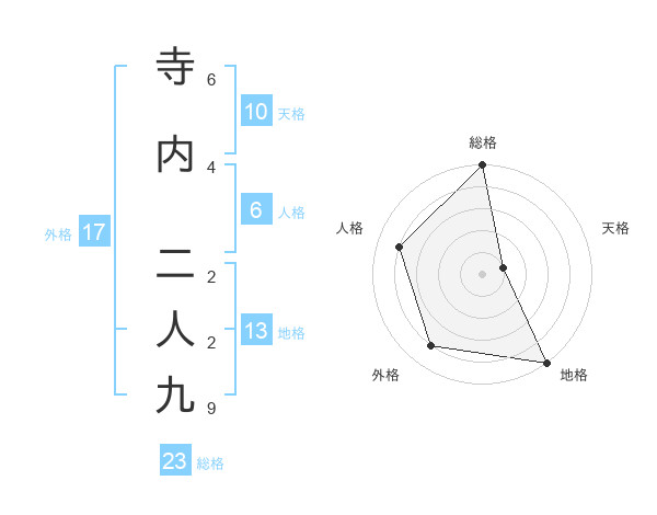 寺内 二人九さんの総格は23画の5点!