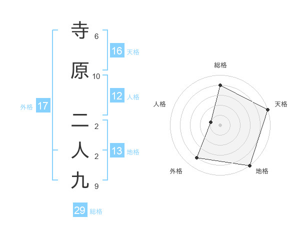 寺原 二人九さんの総格は29画の4点!