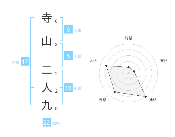 寺山 二人九さんの総格は22画の1点!