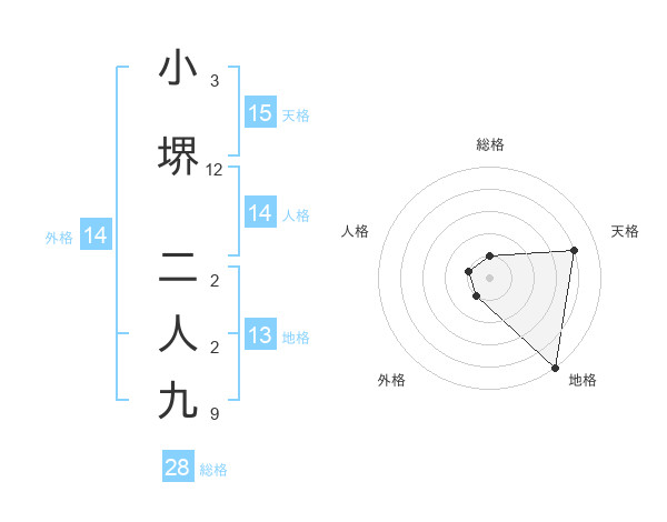 小堺 二人九さんの総格は28画の1点!