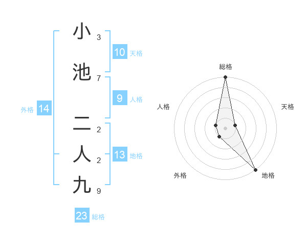 小池 二人九さんの総格は23画の5点!
