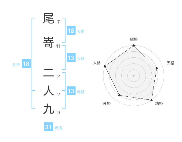 尾嵜 二人九さんを姓名の画数から五運を鑑定