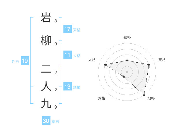 岩柳 二人九さんを姓名の画数から五運を鑑定