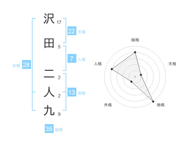 沢田 二人九さんの総格は35画の4点!