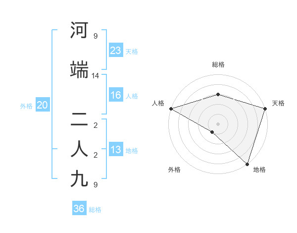 河端 二人九さんの地格は13画の5点!