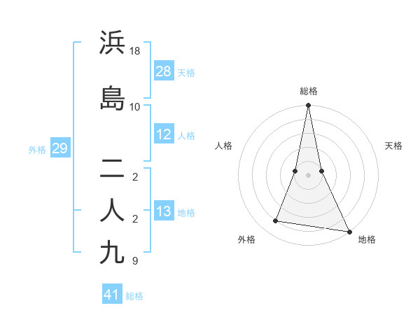 浜島 二人九さんの外格は29画の4点!