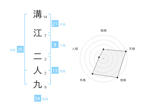 溝江 二人九さんを姓名の画数から五運を鑑定