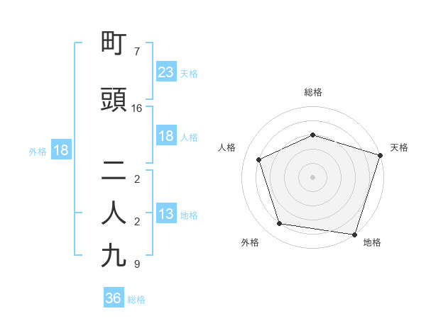 町頭 二人九さんを姓名の画数から五運を鑑定