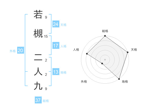 若槻 二人九さんの総格は37画の5点!