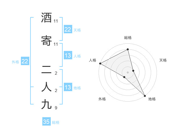 酒寄 二人九さんの総格は35画の4点!