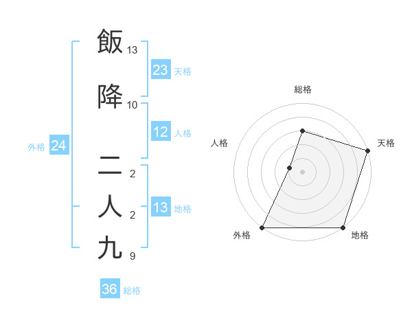 飯降 二人九さんの地格は13画の5点!