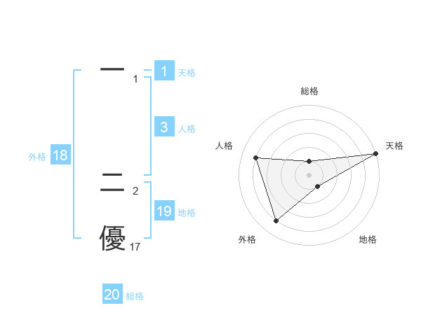一 二優さんの総格は20画の1点!