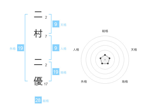 二村 二優さんを姓名の画数から五運を鑑定