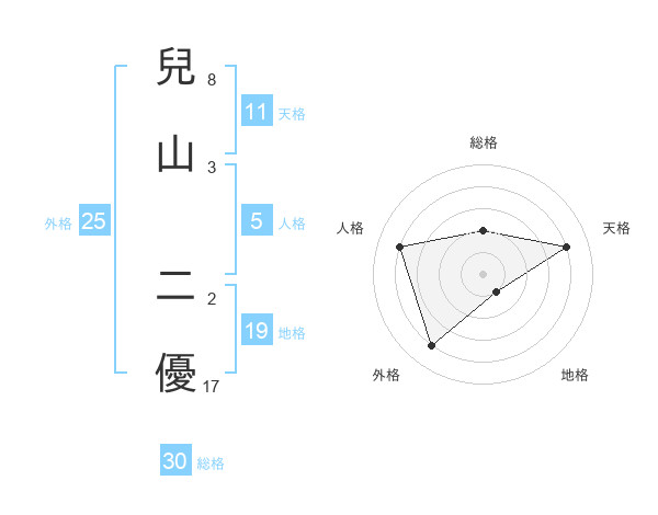 兒山 二優さんの総格は30画の2点!