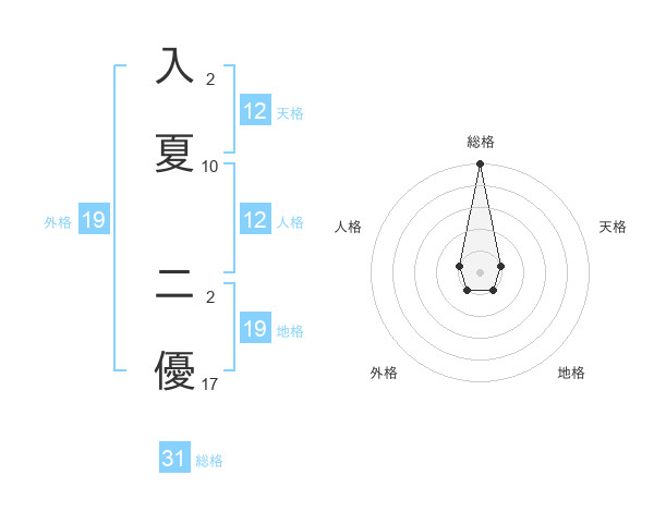入夏 二優さんの総格は31画の5点!