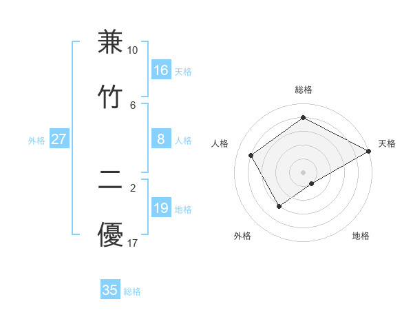 兼竹 二優さんを姓名の画数から五運を鑑定