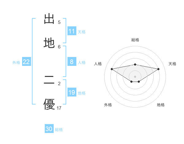 出地 二優さんの外格は22画の1点!
