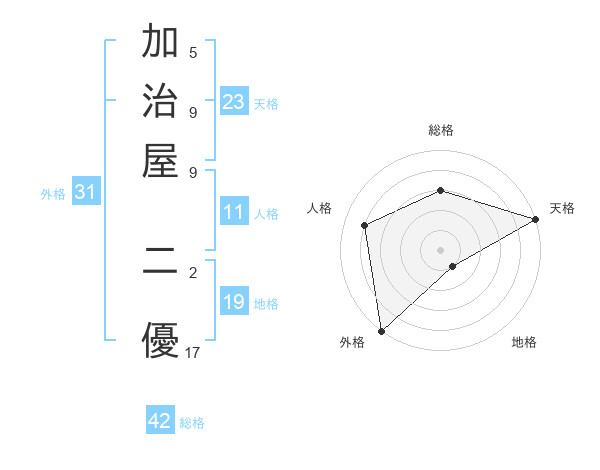 加治屋 二優さんを姓名の画数から五運を鑑定