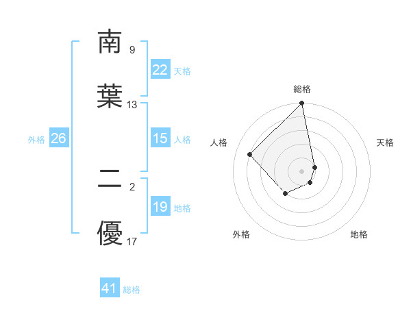 南葉 二優さんの天格は22画の1点!