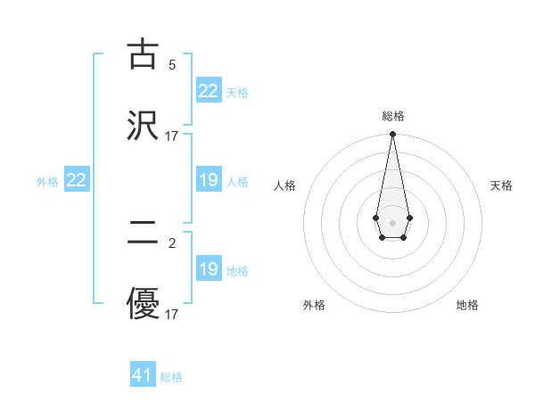 古沢 二優さんの天格は22画の1点!