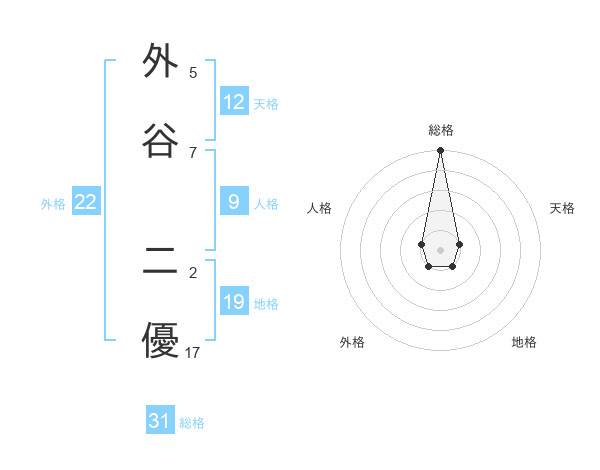 外谷 二優さんの総格は31画の5点!