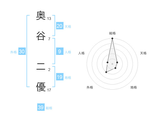 奥谷 二優さんを姓名の画数から五運を鑑定